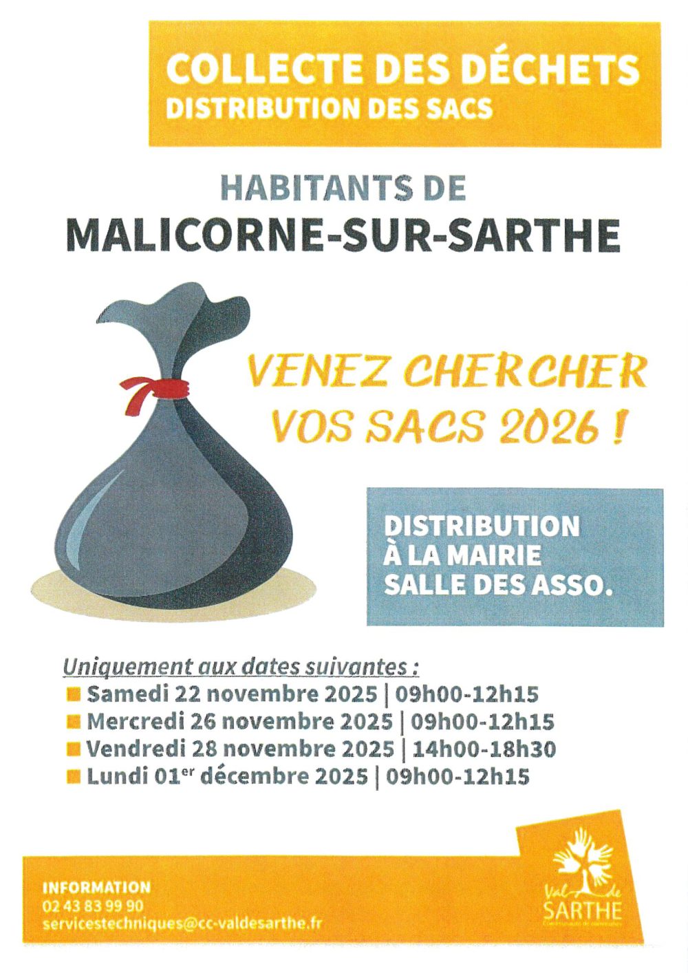 DATES DE DISTRIBUTION DES SACS POUBELLES
