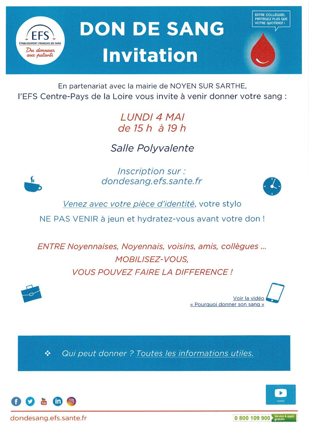 DON DU SANG – 4 MAI – NOYEN