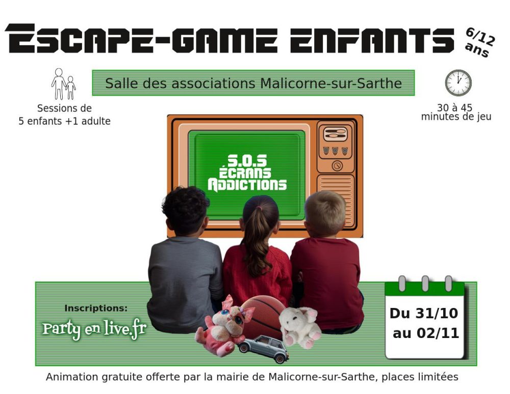 Du 30 octobre au 2 novembre 2025, la mairie de Malicorne-sur-Sarthe, en collaboration avec l’association Party en Live, propose une animation ludique et gratuite destinée aux enfants de 6 à 12