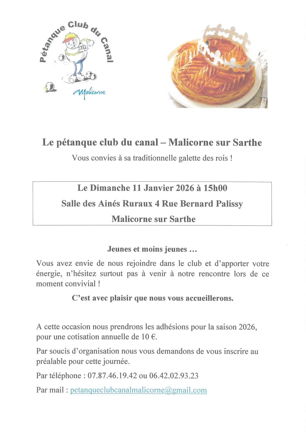 GALETTE DES ROIS – PÉTANQUE CLUB DU CANAL MALICORNE