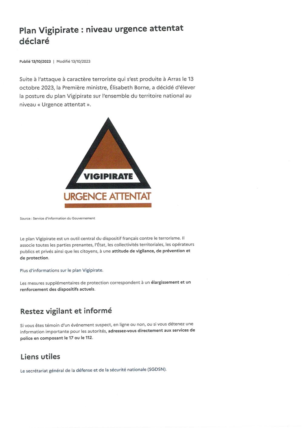 PLAN VIGIPIRATE : NIVEAU URGENCE ATTENTAT DÉCLARÉ