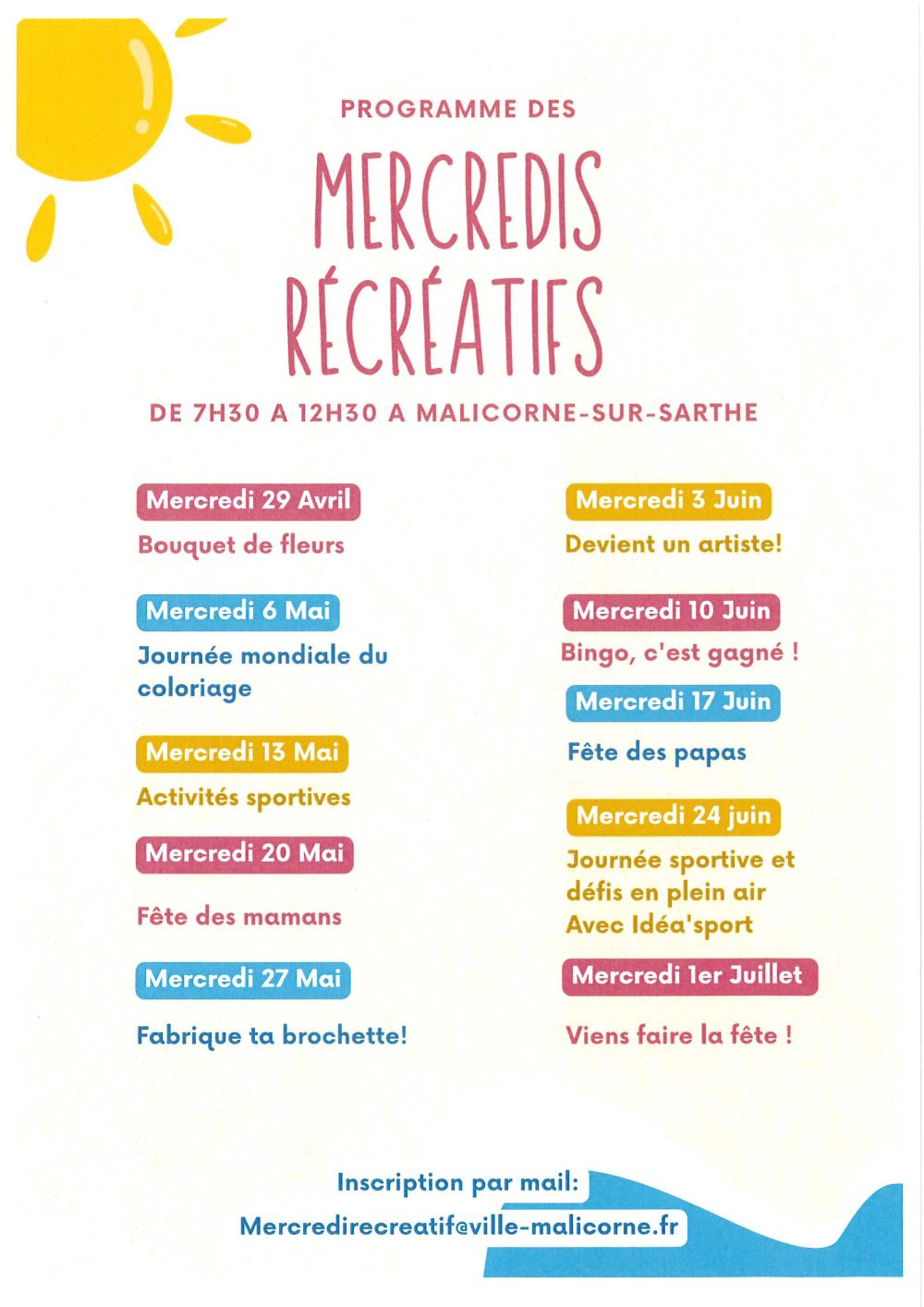PROGRAMME DES MERCREDIS RÉCRÉATIFS